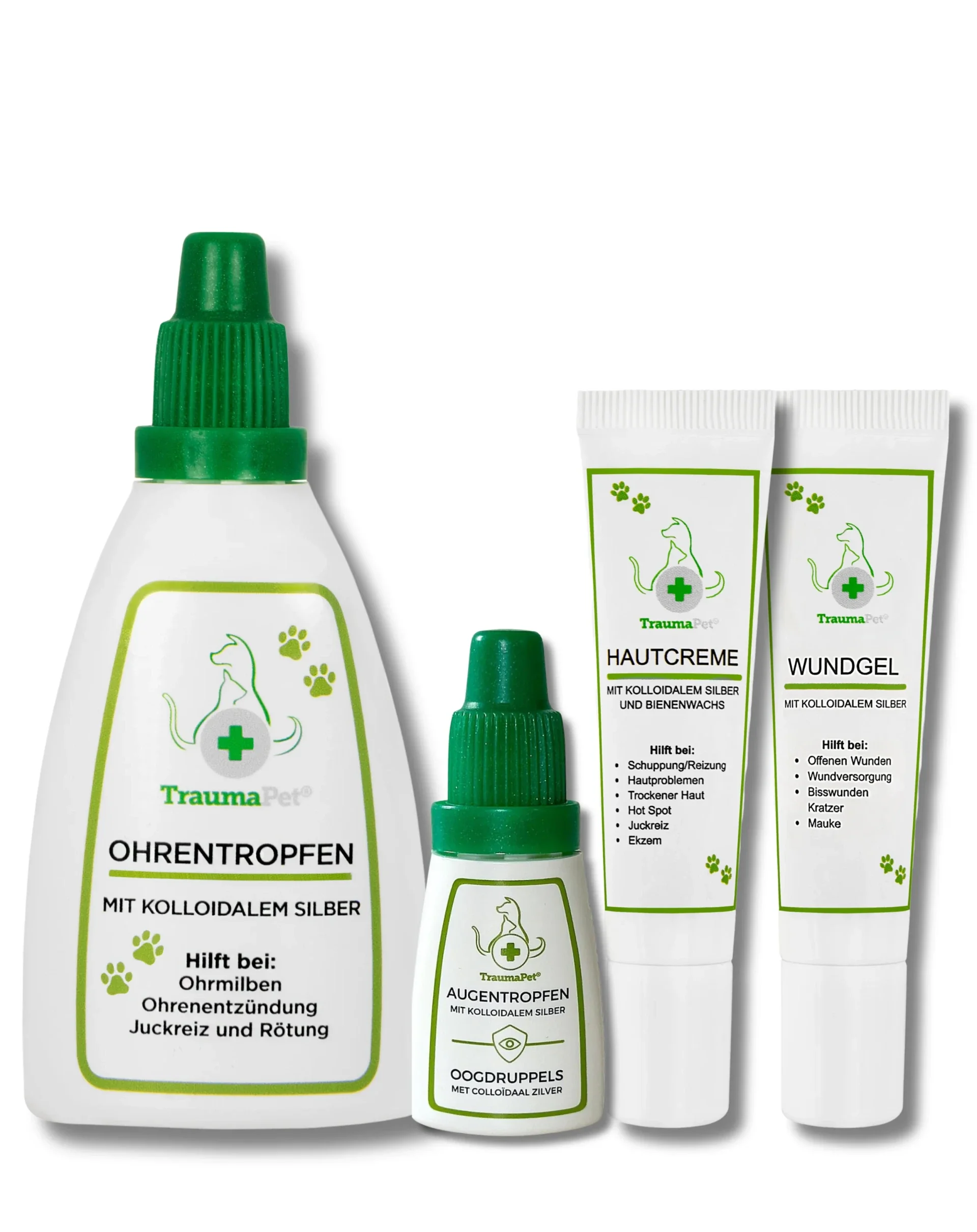 - Vielseitige Anwendung: TraumaPet-Produkte gibt es für verschiedene Körperbereiche, z.B. Ohren, Augen, Haut und Gelenke.